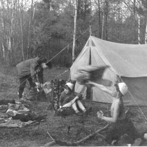 Очередная ночевка в деревне Миталки. Утром нас разбудили коровы. Одна принялась жевать мешок из–под ведер, другая – оттяжку палатки, Пастух читал, сидя невдалеке, какую– то толстую книгу... Общими усилиями потеснили коров... Вот уже три часа за нами постоянно гремит гром, – гроза движется точно с нашей скоростью. И стоило нам стать на ночлег, как, через 20 минут начался ливень. Спасались под тентами от палаток. Сами палатки пришлось ставить уже в сумерках, а костер в этом насквозь про мокшем ивняке удалось развести только благодаря запасному сосновому полешку. А утром – солнце, и мы снова в пути...
